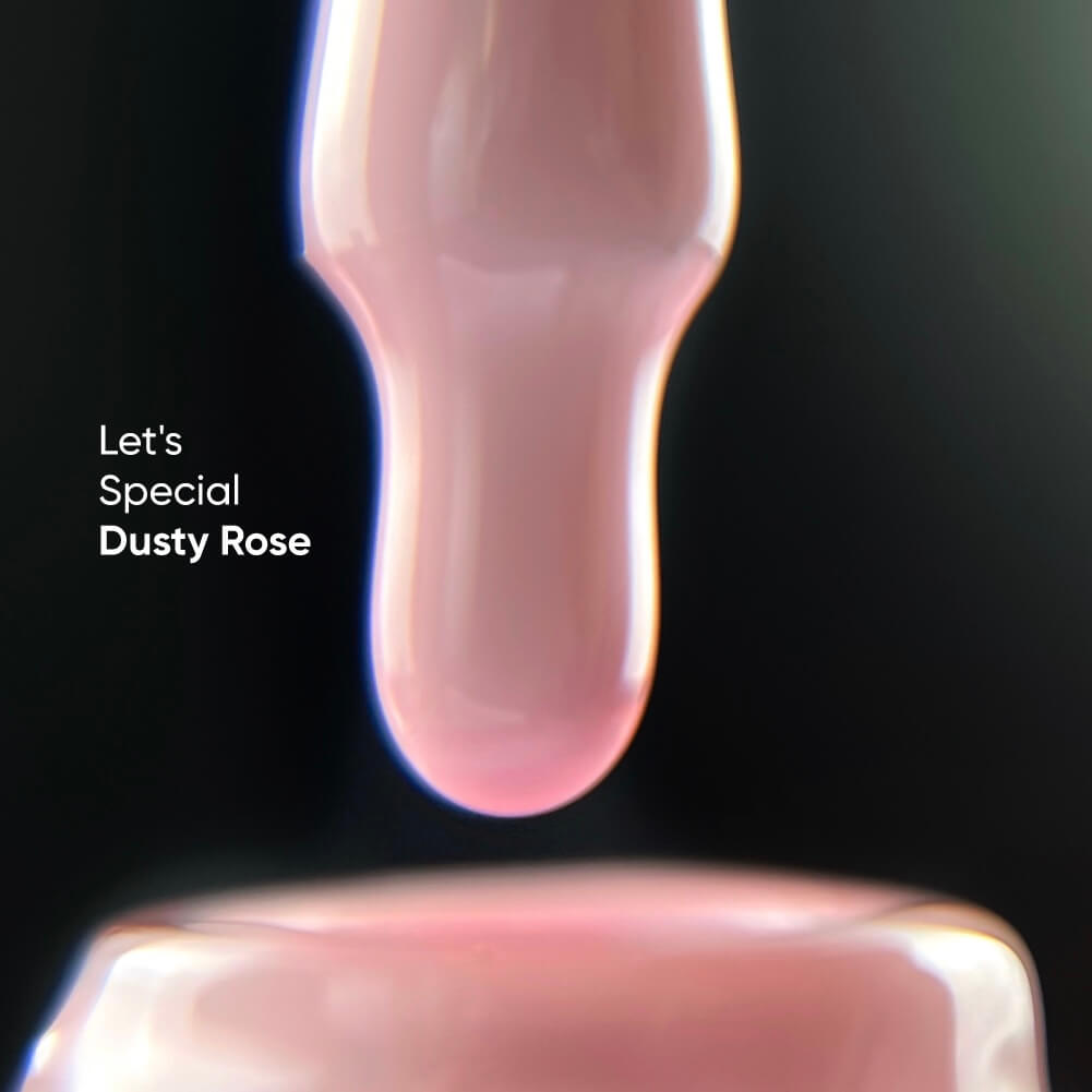 Técnica de aplicación: Tras la aplicación de base o gel, distribuir uniformemente Let´s Special Dusty Rose en una fina capa. Polimerizar 60seg. en lámpara LED. Si quieres obtener un color mas potente y brillante se recomienda aplicar una segunda capa de Let´s Special Dusty Rose.
