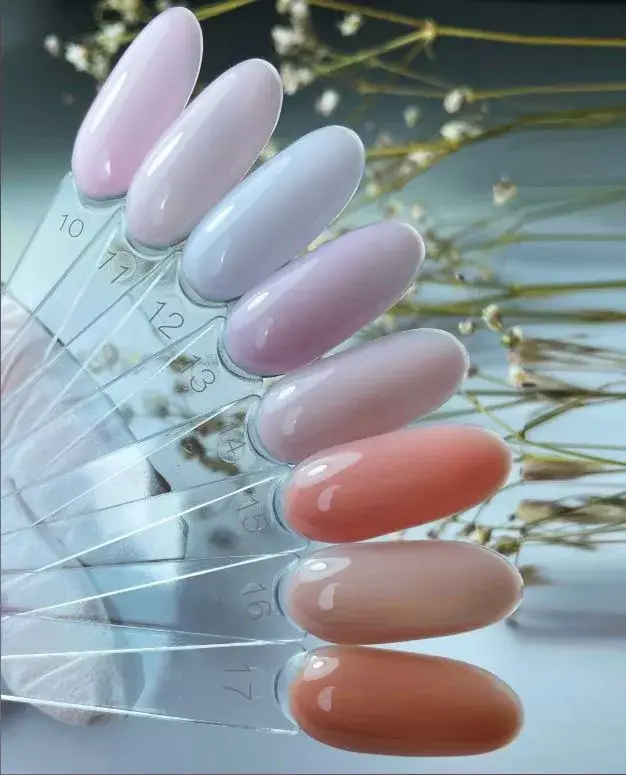 El gel líquido pertenece a la clase de materiales «duros». Este gel se puede usar para extender uñas de cualquier longitud. Su textura más líquida de lo normal es ideal para principiantes que ya dominan la técnica de nivelación.