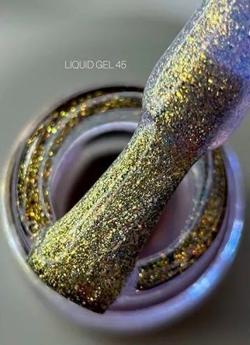El gel líquido pertenece a la clase de materiales «duros». Este gel se puede usar para extender uñas de cualquier longitud. Su textura más líquida de lo normal es ideal para principiantes que ya dominan la técnica de nivelación. Contiene glitter vivo e intenso que te permite crear multiples diseños navideños.