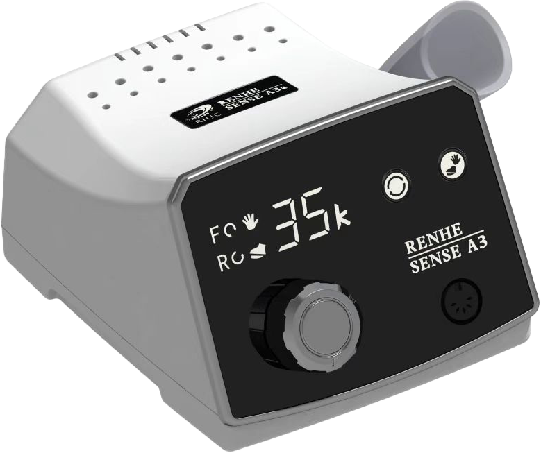 Torno RHJC RENHE SENSE A3 BLANCO. Micromotor de escobillas para manicura y pedicura con sistema de cambio de rotación automático, pantalla IPS indicadora con potenciometro digital. 70w y 35.000RPM.